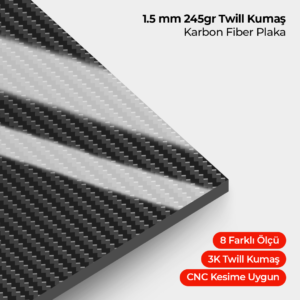 1.5 mm 245gr Twill Kumaş Karbon Fiber Plaka