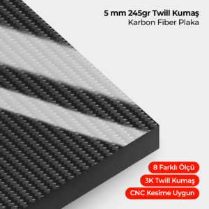 5 mm 245gr Twill Kumaş Karbon Fiber Plaka