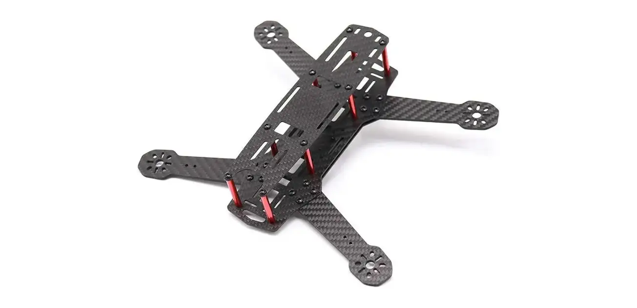 Drone şasesi tasarlarken gövdenin farklı bölgelerinde farklı kalınlıkta karbon fiber plakalar kullanmak, ağırlık/dayanım dengesini optimize etmenin anahtarıdır:
